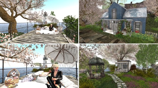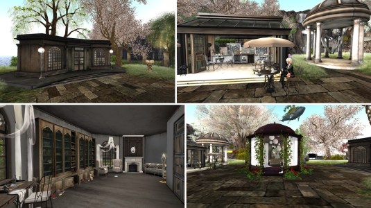 Obscura Harmonium is connected by a bridge to Obscura Arboreous, which has a lovely, peaceful and romantic setting. Coming from the bridge you reach a little court with a cafe, a gazebo with another piece of art from Mistero Hifeng (Non potra’ mai finire), another gazebo in the center and a library building. This court is the heart of the Obscura Arboreous community. The court and all the connecting paths are public as well as a very nice place to sit and cuddle by the shore with a prefect view to the lighthouse.