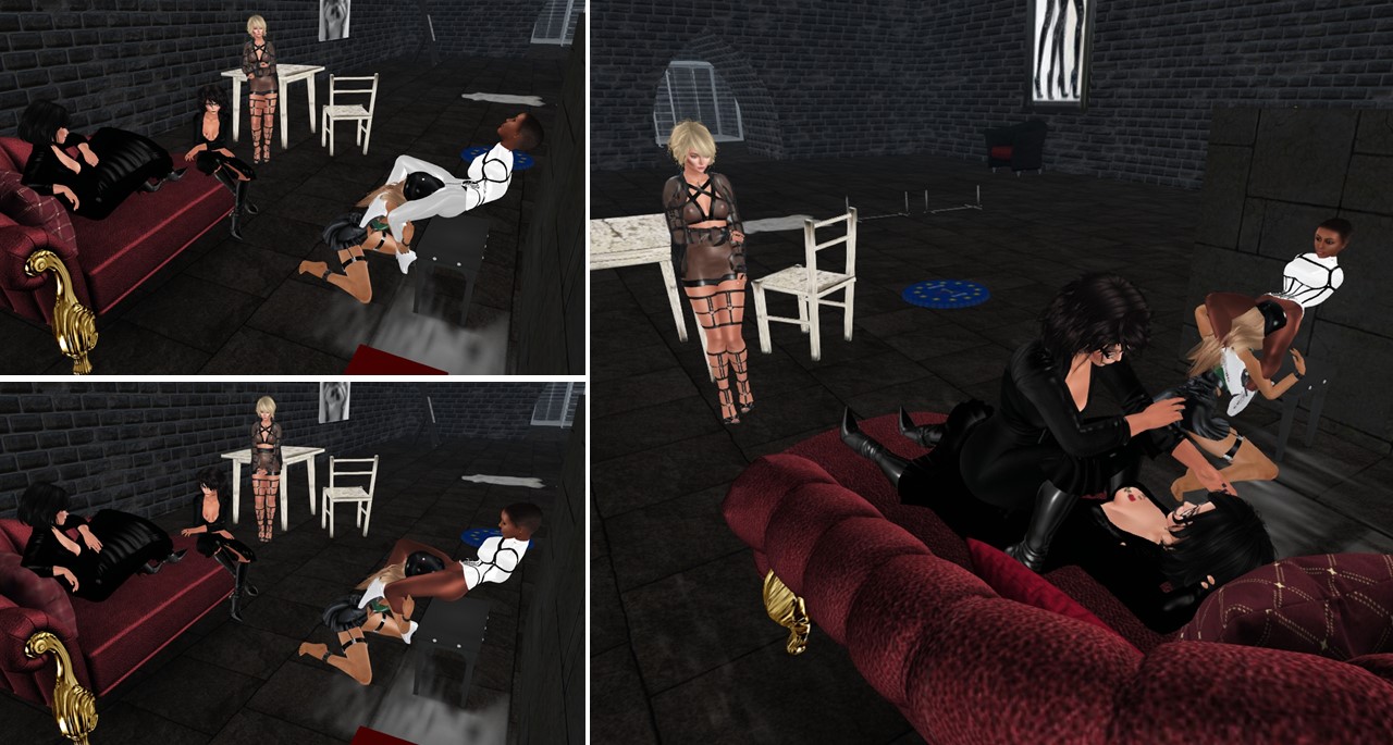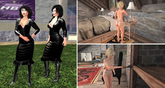 We spent our night with Angelique, slave Flo and slave Gwendi. Angelique still works as a maid in Second Life employed by a couple, who recently moved to Caged Elegance. Mistress Jenny had asked Angelique to provide a few pictures showing her at work and Angelique gave them to Mistress and me that night.