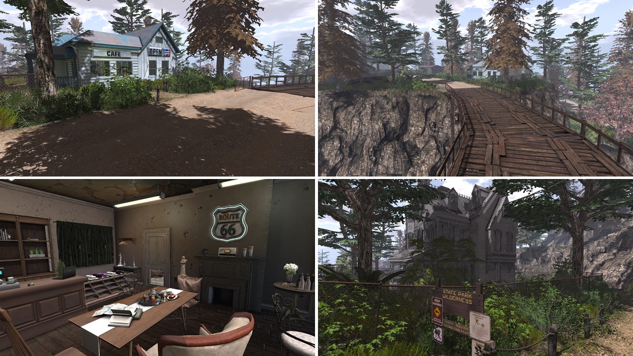 The landing is in a visitor center with some exhibits like a car and a necklace owned by the Nornberg family, most probably a ficitional family, who know? From the outside the visitor center looks quite real and the whole sim, the signs, the park rangers and all detail provide the feeling of being in a National Park somewhere in the US.