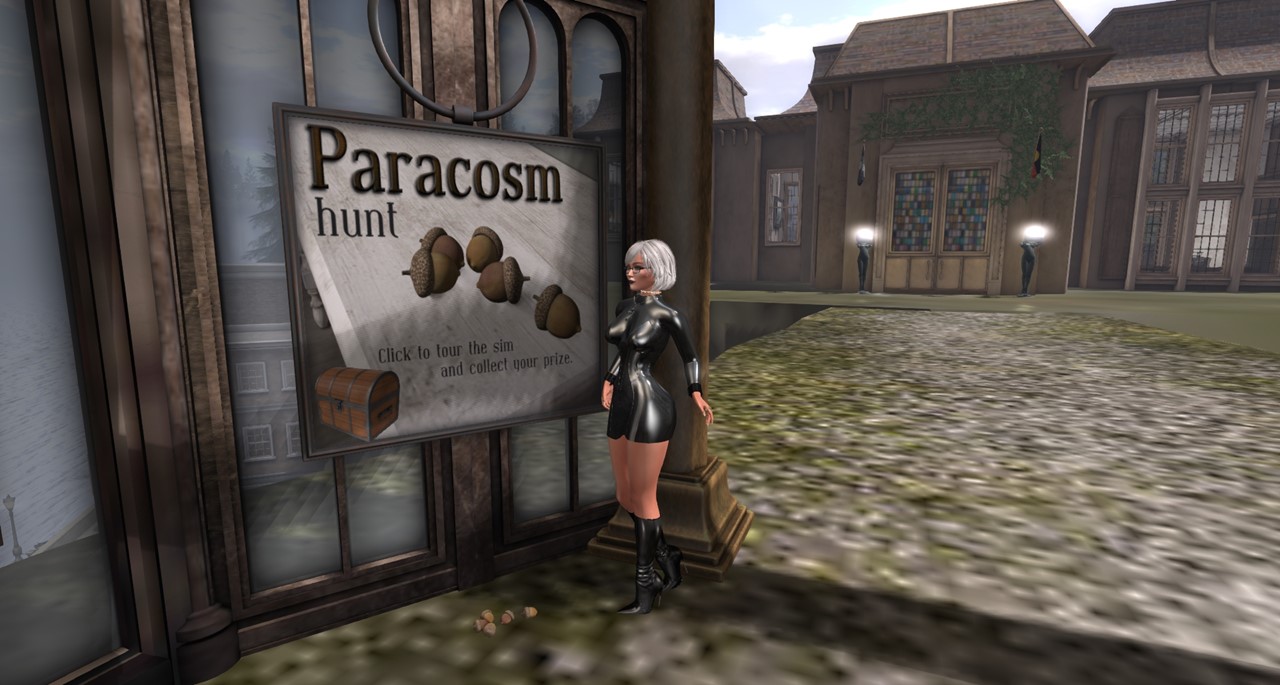 Yet the hunt didn’t take just 15 minutes. I spent over an hour searching the piles of acorn. The hunt has the side effect, that you explore and discover Paracosm. It is a beautiful setting, offers nice clubs with style, great D/s gear – but nothing to obvious. All fits, all has style. I simply enjoyed exploring and trying out one or the other piece of furniture.
