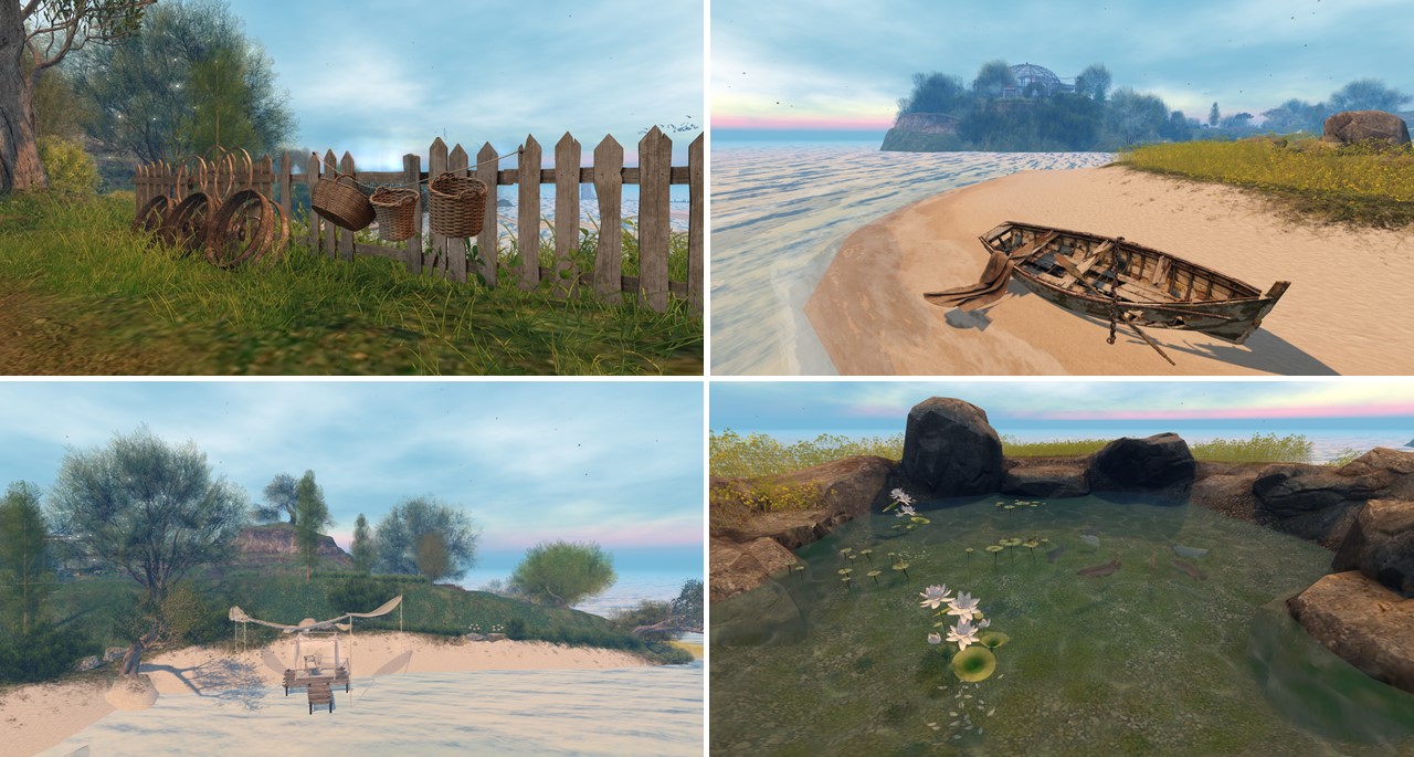 The meeting dome is at the highest part of an island that is full of romatic places, huts, lougers and benches. The selected windlight dives the whole island into a romantic atmosphere. It’s not pure fantasy though, many place are simply beautiful and the decoration is placed thoughtfully. For myself I named the island “Romantic fantasy island”. Opposed to the island is a smaller island with just an old boat and a pond that is full of fishes – another great motif for pictures.