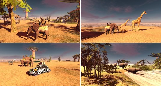 Time for a Safari. I walked back towards the landing point and watched animals. There are many and quite some of them are moving around. I noticed an elephant with two seats on its back and tried to sit on it. YAY. I continued my simploring tour riding this elephant. I saw Zebras, giraffes, hippos, apes and African buffalos. And I had fun!
