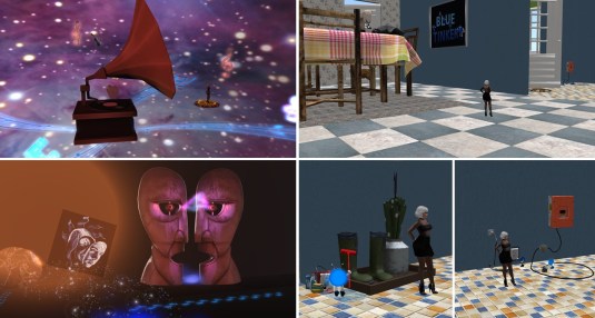 During my visit I noticed two teleport pads, one of them is close to the landing point, another is in the Arkon Fashion store. The teleporter leads to 4 more destinations in the skies of Arkon: Arkon Space, Lights of Arkon, Blue Tinkler, Time of Music. I had a quick look a all of them, but I ran out of time for a more detailled look. But the “Blue Tinkler” is fun – you become a dwarf there and get a new perspective for a normal room.