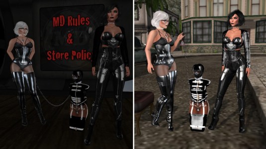 While we stood and modeled at Mesmerize Dungeon, Angelique gave me the details of her outfit. And as there wasn’t much going on at Mesmerize Dungeon we went shopping with slave Flo at my leash. I got the parts of Angelique’s outfit, then we went on to BDSM Lifestyle Swingers Club, which was quite full again.