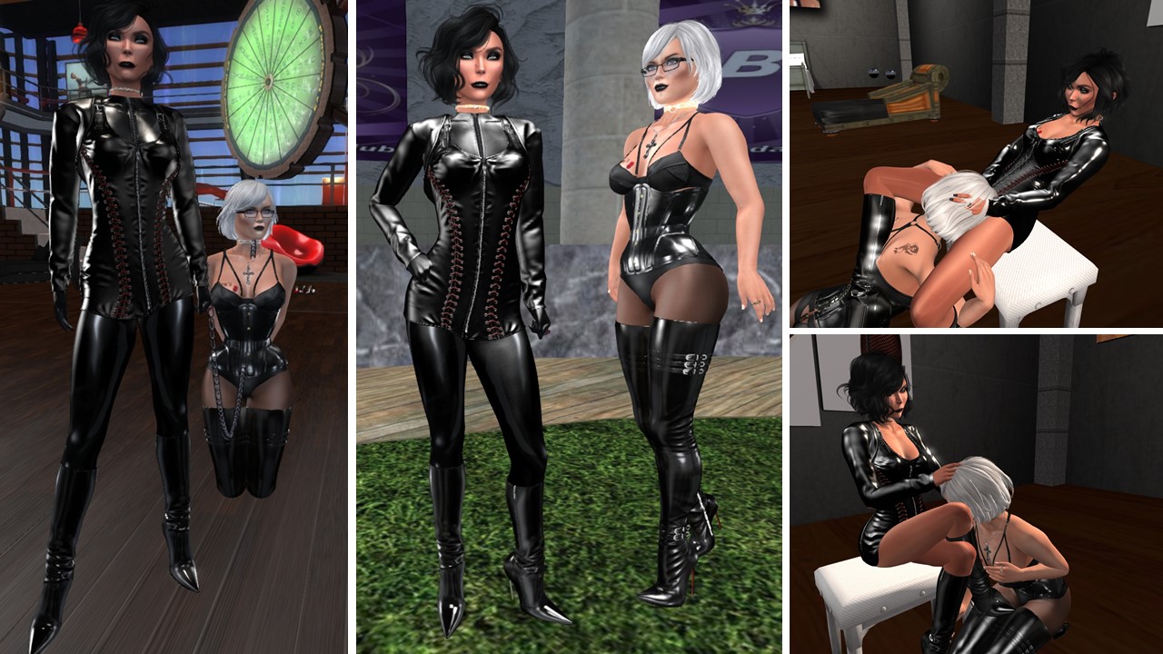 At night Mistress was prevented from coming inworld. But slave Flo was present again. I first made her clean the house. There was not too mucht to do as Ebony had cleaned it in the afternoon. Nonetheless, it was perfectly cleand afterwards. I had three rounds of greedy with Flo. We were just done when Angelique showed up. She had attended her new institution and was still in her student outfit. I wanted to go clubbing a bit and Angelique changed into something suitable – wow! Again Angelique had created a great mix and match outfit.