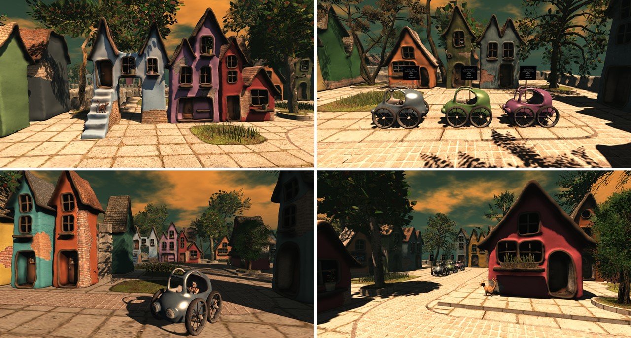 I went over the bridge and visited the other village, that looked alike in the first view. But the houses have more and bigger windows. There are 3 cars, Cica mobiles, that you can either use on the installation or purchase for your own plot. I tried driving one but it is very difficult in the narrow roads. You find some of Cica’s cats strolling around the village, hence I didn’t have to search “the one” cat. For me it seems as if the inhabitants of the second village a slightly more wealthy and live a little bit different.