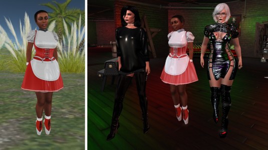 We spent our night with slave Flo celebrating her anniversary. She had changed into a red and white maid dress and had updated her vixen cufffs. She added our script again in our presence and we tested it. Flo had also purchased a new AO and had trouble making it work. It took some time to get it working to her and our satisfaction. Then we wento to Carnal Intentions with her and spent most of the night there. It was full and we had something to watch. Mistress praised Flo publicly and congratulated her to her 7th anniversary. Time flew by quickly again.