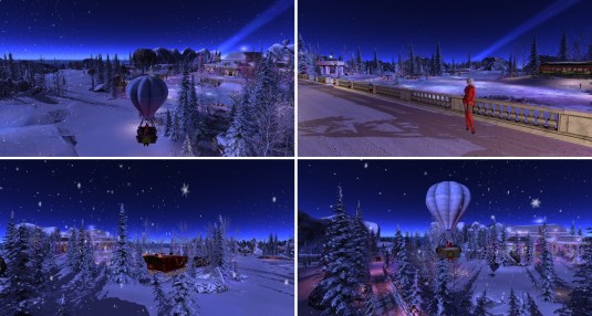 Yesterday, Monday December 14th, I visited Calas Galadhon’s – A Christmas Dream together with Mistress Jenny, Angelique and Flo (more about that in an upcoming diary post). The visit to Calas Galadhon’s Christmas sim has become a regular part of our run-up to Christmas and we always enjoy it. And in my personal opinion, Tymus Tenk and Truck Meredith did a great job again. Although the Christmas installation spreads over “only” one region this year, there’s all we are used to enjoy, the sleigh tour, the ballon ride, the ice rink and the big Christmas pavilion.