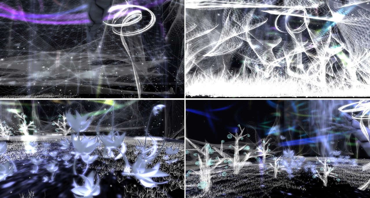 Geomorphism is an art intallation using a lot of light effects. You should set your windlight to midnight for seeing it correctly. Geomorphism is set up in a cube. In the center is a big tree. All walls are covered with sort of geometrical forms – and they are permanently changing. The main light effect is in white and is topped with a kind of aurea borealis. Hence you get a lot of different impressions, depending where you look at, at what time, from what viewing angle.