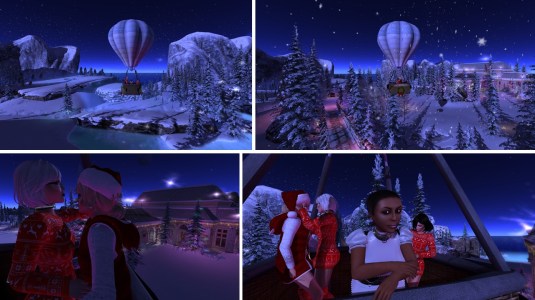 At night we met with Angelique and Flo at home. Mistress and I had changed into the same outfit, a Christmas outfit that we got as a group gift. We had a reason for wearing it. As every year we wanted to visit Calas Galadhon’s Christmas installation. In 2020 it was called “A Christmas Dream” (read also here). For visiting we had to reduce our script load. We were about to leave home, when slave Melissa came inworld. Taking off her restraints and restrictions would have been … work. A slave’s destiny is that sometimes they have to wait for their owner – restricted of course. I took slave Melissa to Psi’s realm and then Mistress, Angelique, Flo and I had our tradition Calas Galadhon Christmas trip.