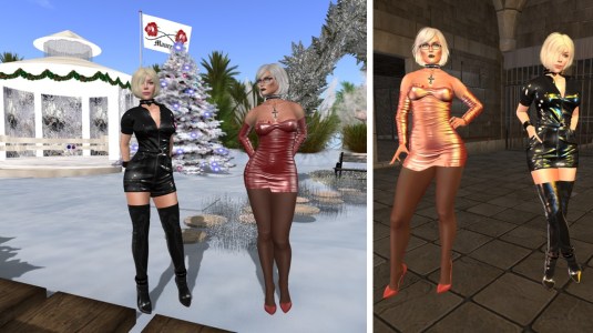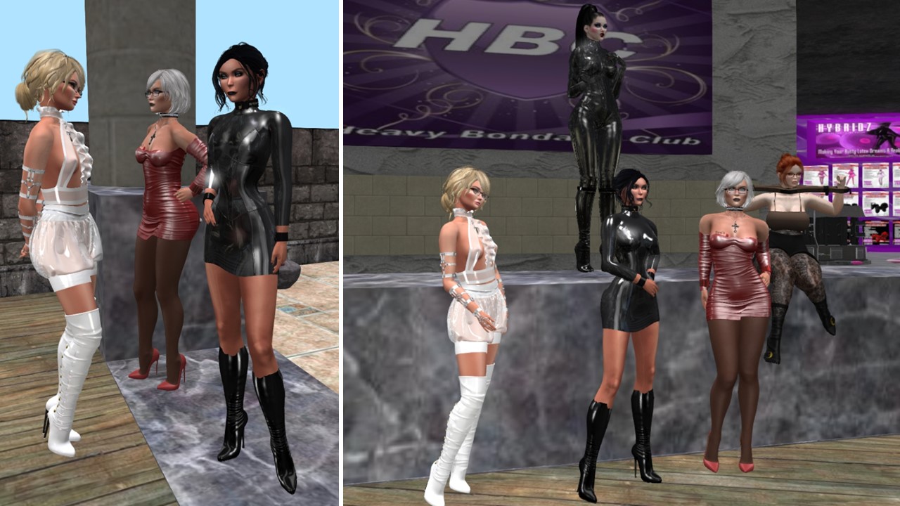 Angelique’s kidnap role play didn’t turn out as expected and she returned. Mistress returned too and we spent the afternoon at Heavy Bondage Club chatting and teasing eachother. I had failed one of Mistress orders the day before and that gave her reason to tease me badly – and she was right in addition. Ann and Vani (vanilla Meili) joined us and Ann was standing behind us on the little wall that surrounds the court and looked like our Latex Goddess.