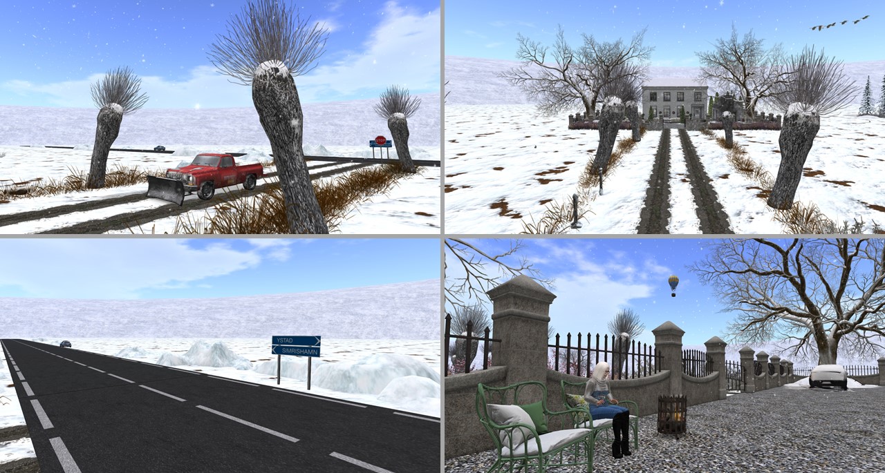 For my simploring tour on New Year’s Day I picked Snoweeta from scoop.it SL Destinations. Snoweeta is a general homestead owned and designed by Kaja Ashland. She wrote in the landmark description: “An endless winter walk over the vast cloud-covered fields in Skåne can look empty and devoid. But when you look around closely, the snowy scene has many stories to tell…“