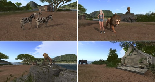 What’s outstanding is the rest of the sim, pure savanna and wildlife. And you can see and watch the animals from very close by and they won’t bite! Some of the animals are animated and it is really fun to watch them. What did I see? Elephants, lions, gnus, flamingos, zebras, giraffes, an ape, a parrot…
