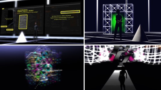 After the short trip to the ground, you will see before you an illuminated path leading you to the center of CELLS – along the way, don’t forget to locate the cones. Moki has created and hidden some lights that will change you, others around you, and most importantly the exhibit as you wander with this attached light. Each level has one hidden light for you to find. Look for a white cone like the one next to The Sim Quarterly avatar in the welcome area. There are 5 cones on each level, but only one of the cones has the prize in it!