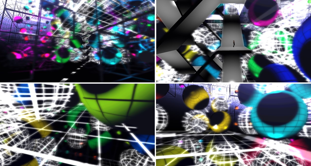 To exit the landing area and enter the installation, just click the glowing center of the portal and arrive at the main part of CELLS!
