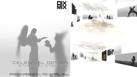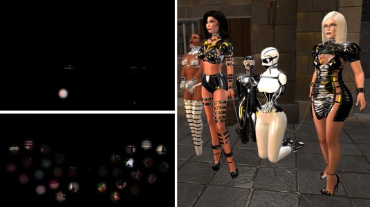 “I want to show you something” was created by Venus Adored, who made projections of the daring, thought provoking RL images by Daantje Bons, a famous Dutch photographer. This way the images, although projected on 2D walls become a 3D effect – light boxes based on RL photography. The boxes are made of light reflections, creating an illusion of depth. It is Mandel Solano also a second life resident, who taught Venus to work with reflections. The effect is even stronger through the mirroring floor of the gallery. Be sure to use either the shared environment of midnight when visiting the exhibtion and enable advanced lighting and projections.