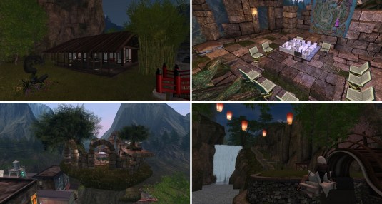 If you walk from the landing point not into town but over the bridge, over the river you enter a complete different world. A long stairway leads into the forest, which I called magic forest because of all the lights and laterns. There are quite a lot places to sit and mediate, places to enjoy the nature and the magic, places to spend time with a loved one either under a tent or in an hallow stump. Again, I’m pretty sure that I missed many details.