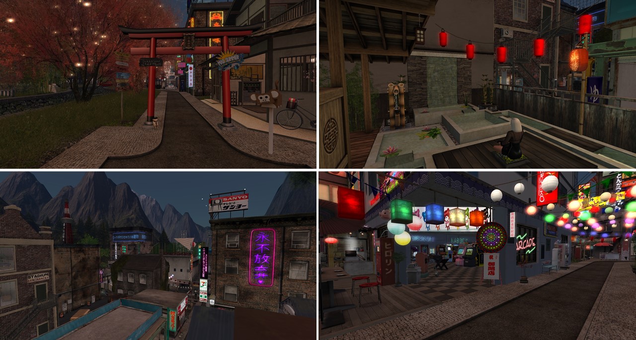 The town itself is a busy place and there’s a lot to dicover. The streets are illuminated not only by boards and raceways but also by decoration lights as if there’s a festival or special day to be celebrated. Some of the stores and houses are furnished and I recommend to have a closer look. For sure I did not discover all but I particularly liked a little Japanese garden with trick fountains – an oasis of silence in a backyard.