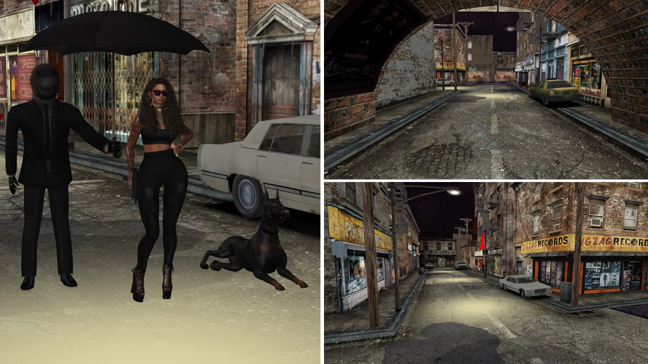 The headquarter fits perfectly with The Inshan Group. You will notice that it is built thoughtfully and with love for the detail. It is an urban setting. The landing point is on a street, for sure not the best district of the town – and it is raining. The concept is technically quite interesting. The entrance doors of the buildings are teleporters which bring you inside. And the inside doors are also teleporters which bring you into separate rooms. Each room is in a separate skybox. This way you have quite some privacy in every room – and privacy is important for the Mafia business, isn’t it? There is a brothel with a main and a VIP entrance round the back, a warehouse to store victims, several offices, a so-called orgy room, a bar, a dungeon and some more private rooms.
