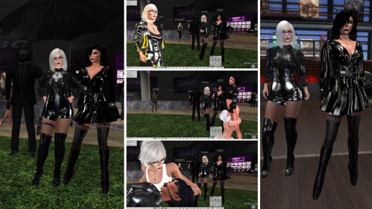 March 30th: Diomita and slave Elena at Psi’s realm / Flo’s restricted view (lower left), Mistress Jenny and Diomita at Carnal Intentions with Flo and slave Elena / at Psi’s realm with slave claire / slave Elena’s restricted view (upper right)