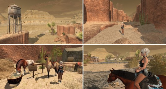 And there is one feature that you shouldn’t miss – the large canyon that you can easily see on the bird’s eye view. It feels huge when you walk inside of it and again it really felt being scorching hot. If you have fun riding a horse, there is also a horse rezzer. I rezzed a horse an enjoyed riding it and seeing Hermosa from another persepctive.