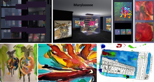 It is the first time that I came across the artist Marylooooe, She is in Second Life for 5 years and had several small and two larger exhibitions in favor of “Feed a smile” and the “Parkinson foundation”.