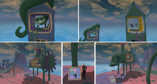 I saw a family of dinosaurs as well as a big frog sitting on one of the steep rocks. I tried sitting on quite some of the many spots. And I had a look at Cica’s shop at Lollipop by Cica Ghost. It offers the different mice and the frog.