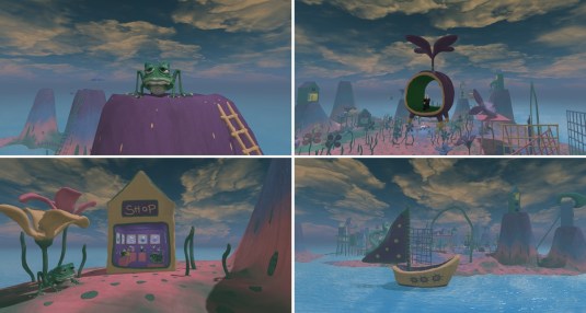 Also quite close to the landing spot is a strange kind of machine – the lollipop machine. In front of it are a few gear wheels, and in the rear is a tube from which lollipops drop on the ground. At the base of the machine is a board where you can get a free lollipop to wear for your visit (or later of course). You can change the colour of the lollipop.