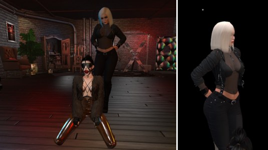 Monday, August 9th, Mistress and I met in the afternoon again. Mistress ordered me to her throne in our skybox and made me wear the Venus corset and latex pants. She added a gag and the blindfold and took me to club Domme a Domme. Kneeling at her feet and leashed to the failed domme sign, Mistress and I caught up with our mutual news. Afterwards Mistress blindfolded me and left me alone in the small circle that I could still see. She was around, but I couldn’t see her anymore. Hence i had time to focus – and I did. Faye tried to IM me to report in, but I couldn’t answer her.