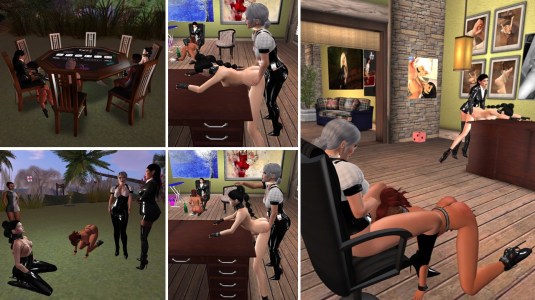On Tuesday, August 10th, I was a bit early for my meeting with Mistress Jenny and I tried to change my appearance a bit, the make-up and the hairstyle – and I changed into something latex again. I don’t know it the desired effect, looking a bit more strict and arrogant, was achieved, but Mistress told me sh’d like it. We went to Heavy Bondage Club where we caught up with our news, then Mistress was interrupted and logged off. I went to club DeLust where Mistress joined me later again. Faye was inworld and we summoned her to us. We intend to take her a bit closer to us and to push her a bit deeper into submission to us. And while we talked, I forgot to take any picture.