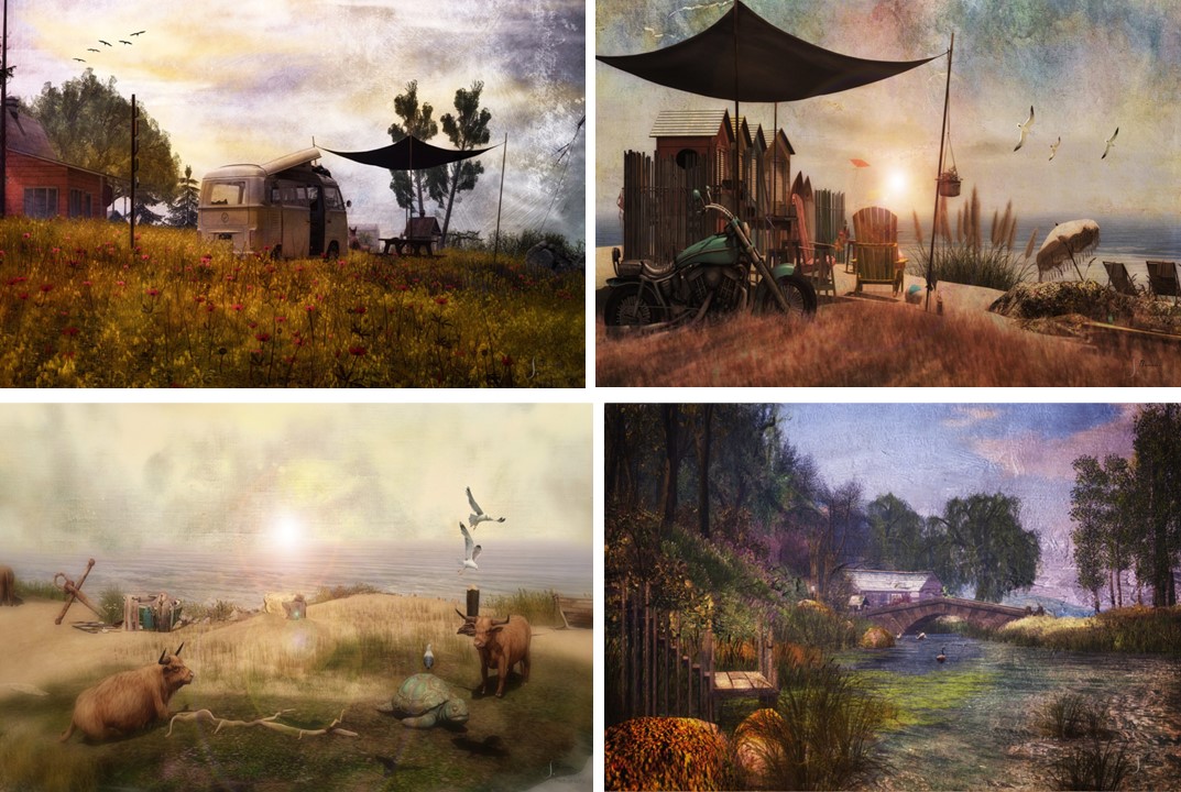 The selection compromises 10 pictures and shows the little paradises we can see and create in Second Life. Sandi’s style reminded me of Michiel Bechir’s own style as Michel also takes his pictures directly in Second Life.