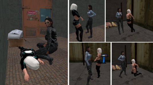 Thursday, October 14th, was quite different by accident. I went inworld after lunch and roamed a bit through the clubs. None of the family was present and I didn’t expect Jenny being inworld during the earlier afternoon. At Dark Butterfly I saw a woman, let us call her “J”, wearing something like a combat uniform that reminded me of Lara Croft. I came into contact with her and a very intense roleplay began. “J” pushed me more and more into the corner aksing questions about a missing file she was looking for – and finally she overwhelmed me. Once in control she had several threats on stock for me and I was already thinking who might be able to pay ransom for me.