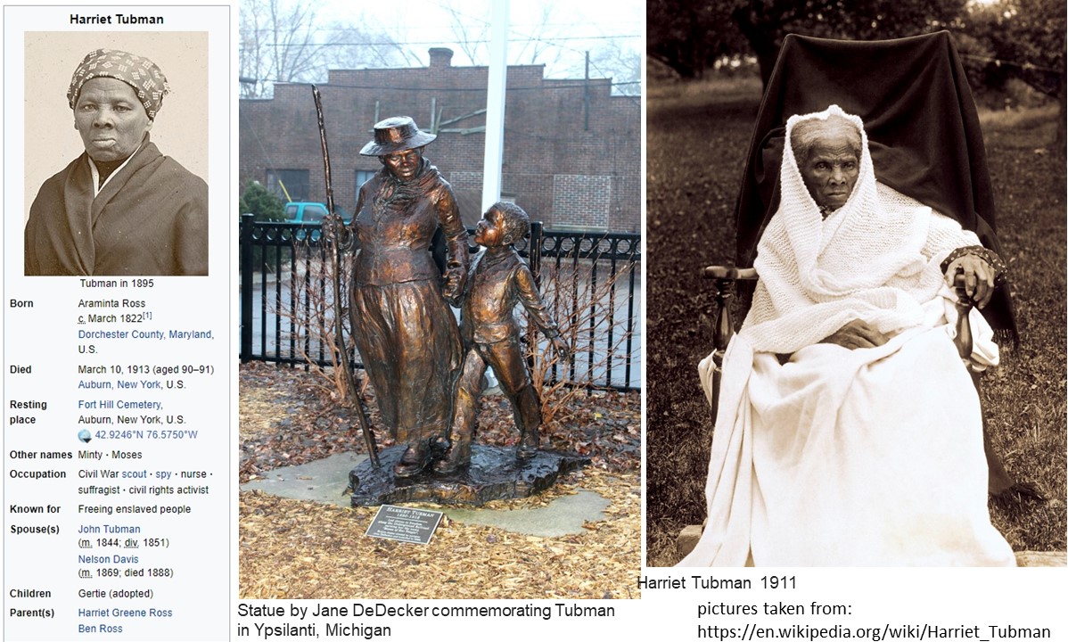 pictures taken from wikipedia https://en.wikipedia.org/wiki/Harriet_Tubman