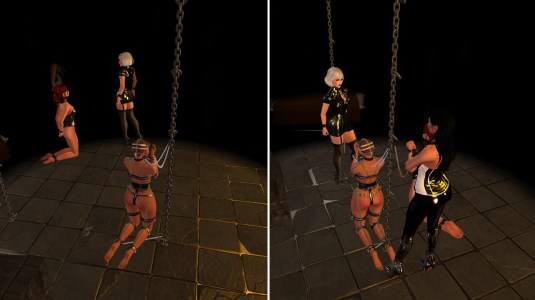 Flo departs for the evening and Mistresses decide to take us to Psi’s realm. It is now that my mind starts to race a little as Mistress Diomita adds my restraints and Mistresses decide on my fate for the evening. Mistress Diomita has all the control as she decides to chain me. For a little while I follow Mistress Diomita as she moves around the room – teasing the range of my vision a little – I have no choice but to follow her with my gaze.