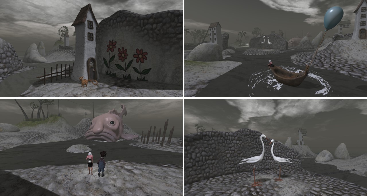 I had a lot of fun exploring “Make a wish“. I tried some of the animations – use your mouse and hoover over buildings, animals and ropes to find them. I sat down and watched and I found a few more rockskipper fish as well as another stork besides the couple that is also the motive of the poster.