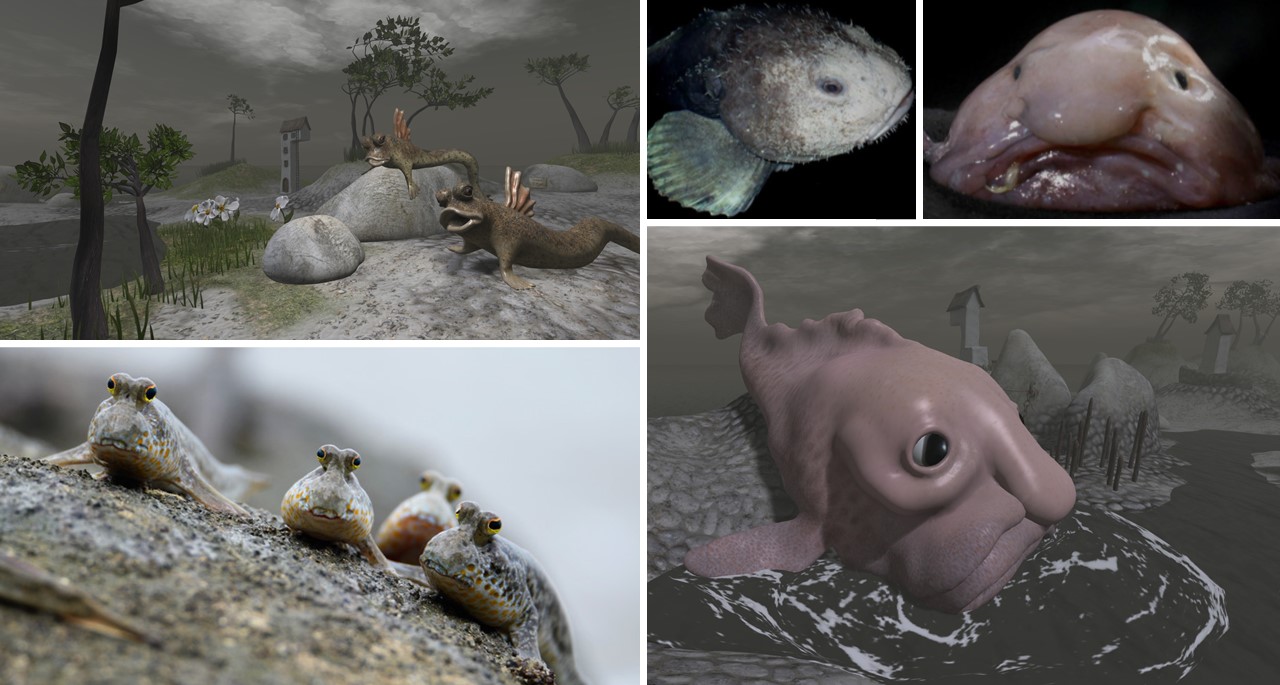 Once again Cica created a lovely fantasy world this time around two very outstanding fishes – blobfish and rockskipper fish. To be honest I never heard about both and looked them up on the net. Blobfish are famous for being the most ugly fish. When they are in the sea they are not that ugly, but once outside they look really sad and ugly! And rockskipper fish are famous as you can find them outside of the water on rocks. Both blobfish and rockskipper fish are not as huge as they are at “Make a wish” by Cica Ghost.