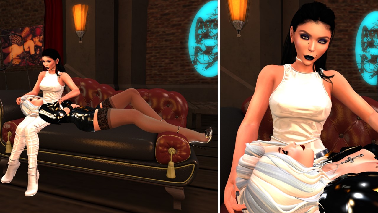 Our night began with a skipee with Flo. When we had finished the game, slave Holly and slave Alessi had both come inworld and we decided to have another game with 5 people (Mistress Jenny won it). We went to Psi’s realm afterwards and Mistress asked me to lock and leash our slaves. Of course I did. I was just done with slave Alessi and slave Holly when also slave Lily showed up … and hence I added her. Flo did watch from a safe distance and left for bed when I had finished my work.