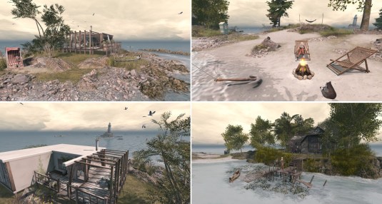 There is a lot of water, and small islands interspersed with beaches and homes you can spend time/relax in. All houses are for public use. Feel free to wander inside them all.. There is a boat rezzer at the main landing area for traveling about (Easier perhaps as there are no paths connecting islands!) Of course, flying is always an option.