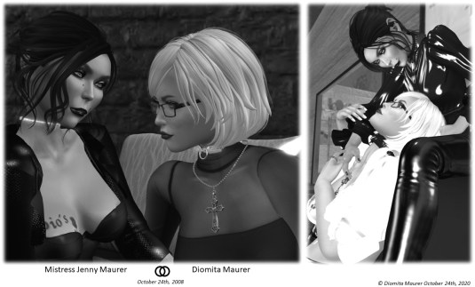 After that was done, I punished slave maid Flo with my crop – a tool that I didn’t need for a long while. Anway, Flo’s bum was glowing and will hurt a few days. Angelique didn’t hold back and added some spanks and admonished slave Flo to listen better and to obey (geez – she really inherited some genes *winks*).