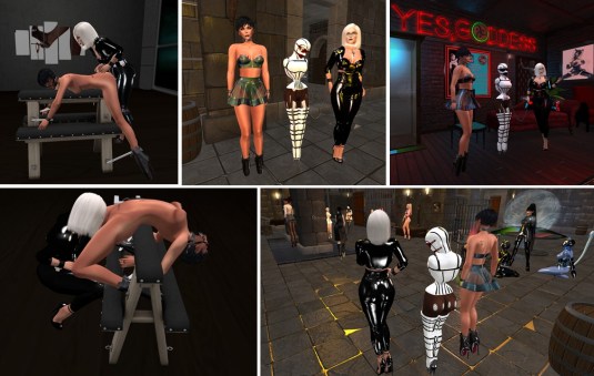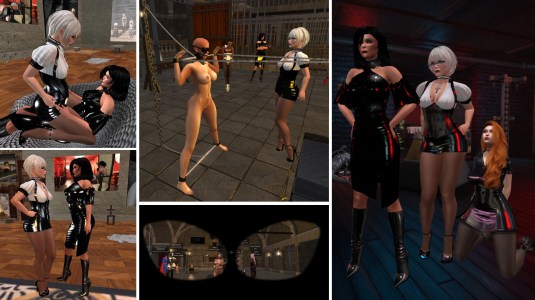 Mistress Jenny and Diomita at Carnal Intentions with Eroticlaire and Elena (upper left, Mar 29th, 2021) / Miss K – The Inshan group (lower left Mar 25th, 2021) / The Jenny Maurer Twins (Sep 12, 2021) / Goddess Katie with Diomita (upper right, Nov 22nd, 2021) / Mistress Mercy and Diomita (lower right, Jan 23rd, 2022)