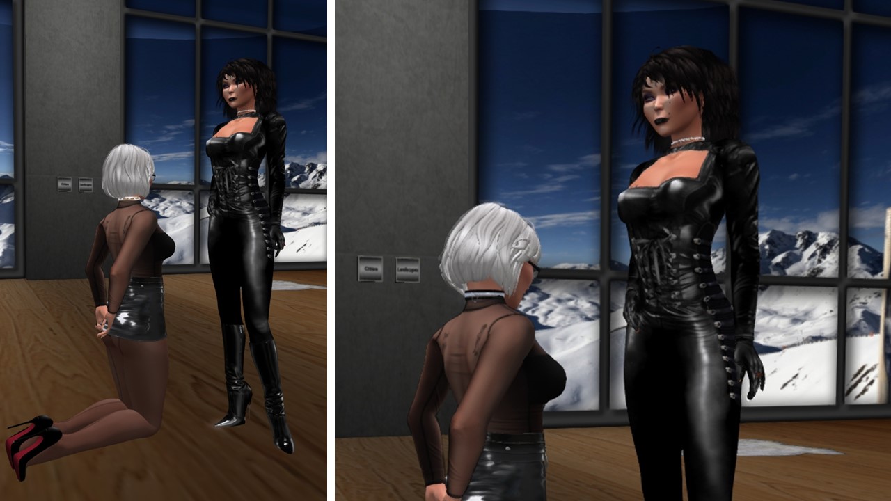 Mistress Jenny and I went to club DeLust, which was really full and laggy and hence we didn’t stay long there, just long enough to take a nic anniversary picture of us. At close to midnight we went to our loft skybox and Jenny knelt for me and I replaced her partnering collar with her slave collar. Fond memories – 12 years ago I collared Jenny, the beginning of us and also in another way the beginning of my way becoming ber Ehesklavin. Yet we both didn’t know or forsaw that.