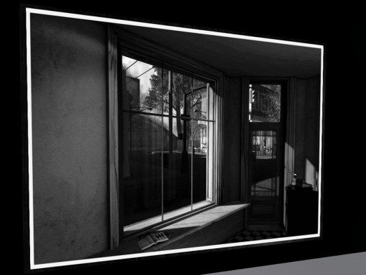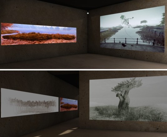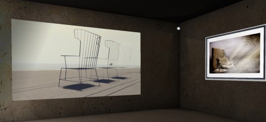 Selen’s pictures as well as the 3D-objects reflect that duality, ying and yang, be it the swing or the two figures with the jumping spark. Together with a picture, that consists of several layers and is changing permanently, the video on the front provides a different experience every moment. And the mirroring floor at the Nitroglobus Roof gallery adds to that perfectly.