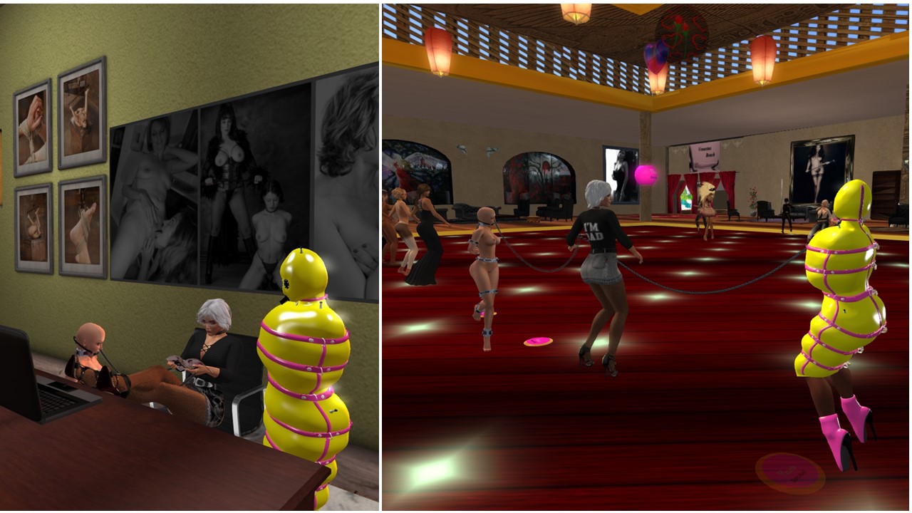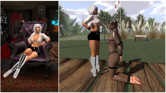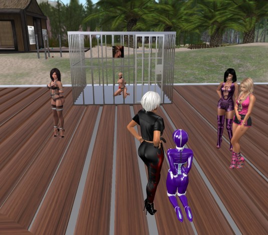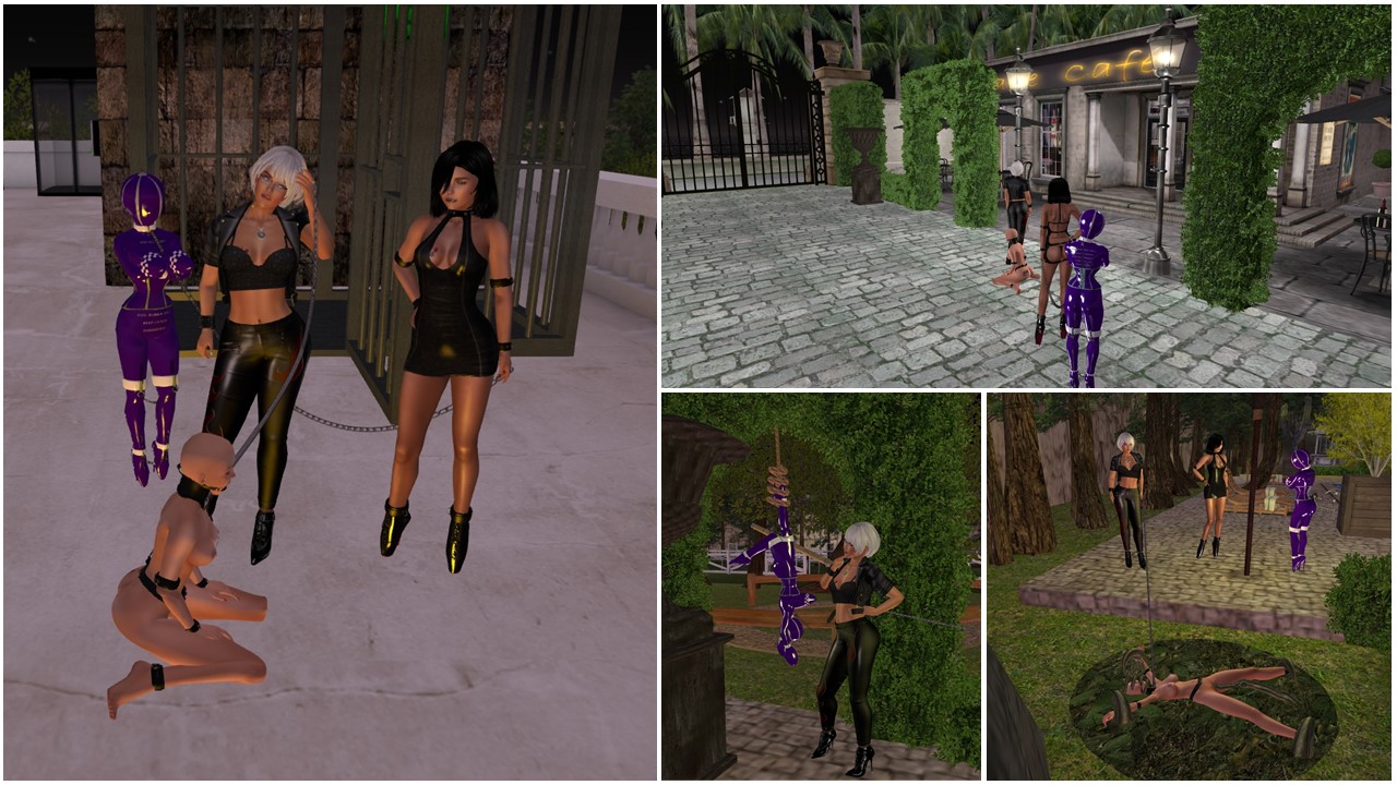 Her latest home, Silent Manor, contains many of the beautiful style elements that visitors already admired in her previous homes, such as the gorgeous garden, Bondage Cafe, a boat dock, a hippodrome and other race-horse training facilities, a harbor, an elegantly decorated villa with an inviting swimming pool in the back and, of course, many really cool traps scattered across the area. A must-visit is the roof-terrace where cage-enthusiasts can find a carefully curated selection of some of SL’s nicest cages and cells.
