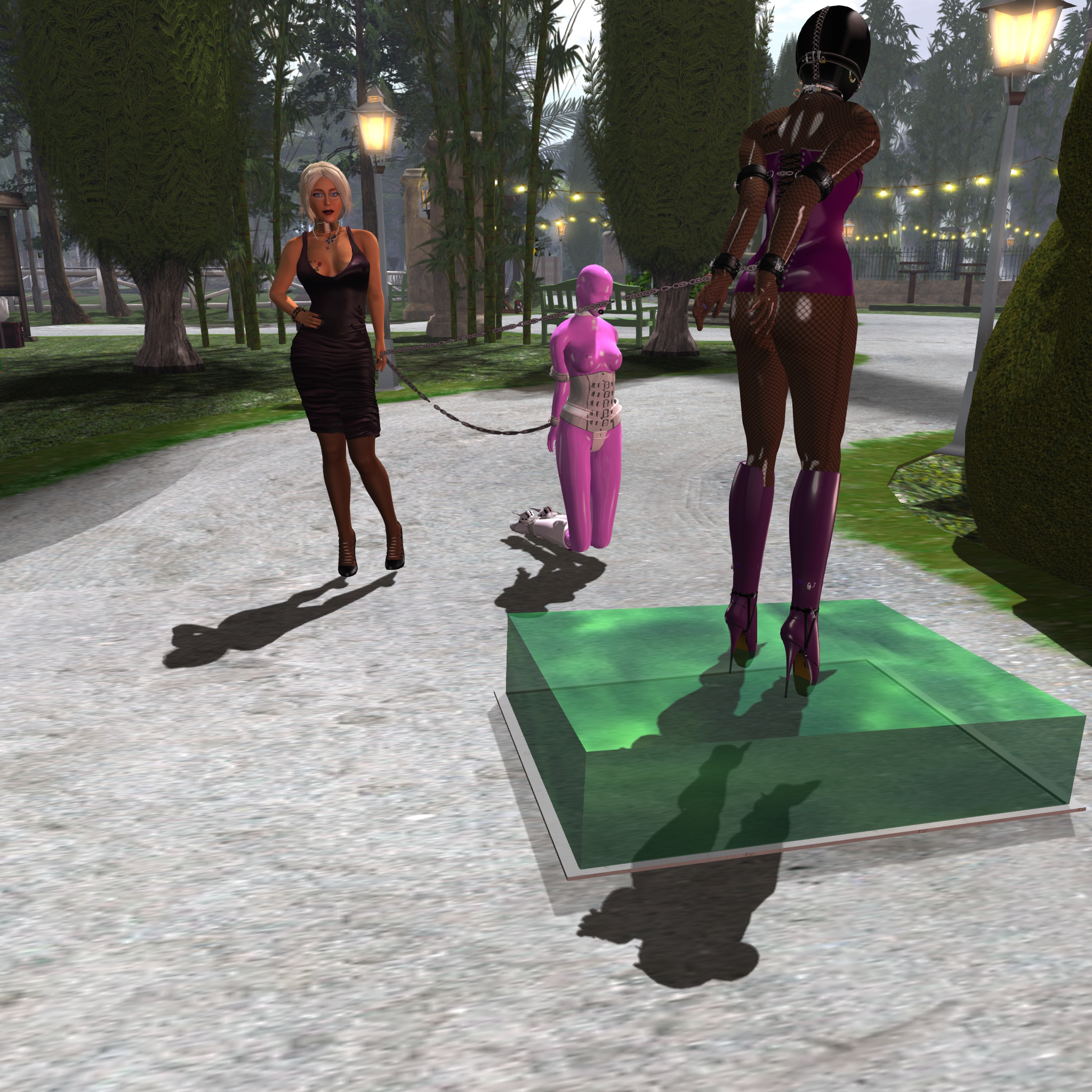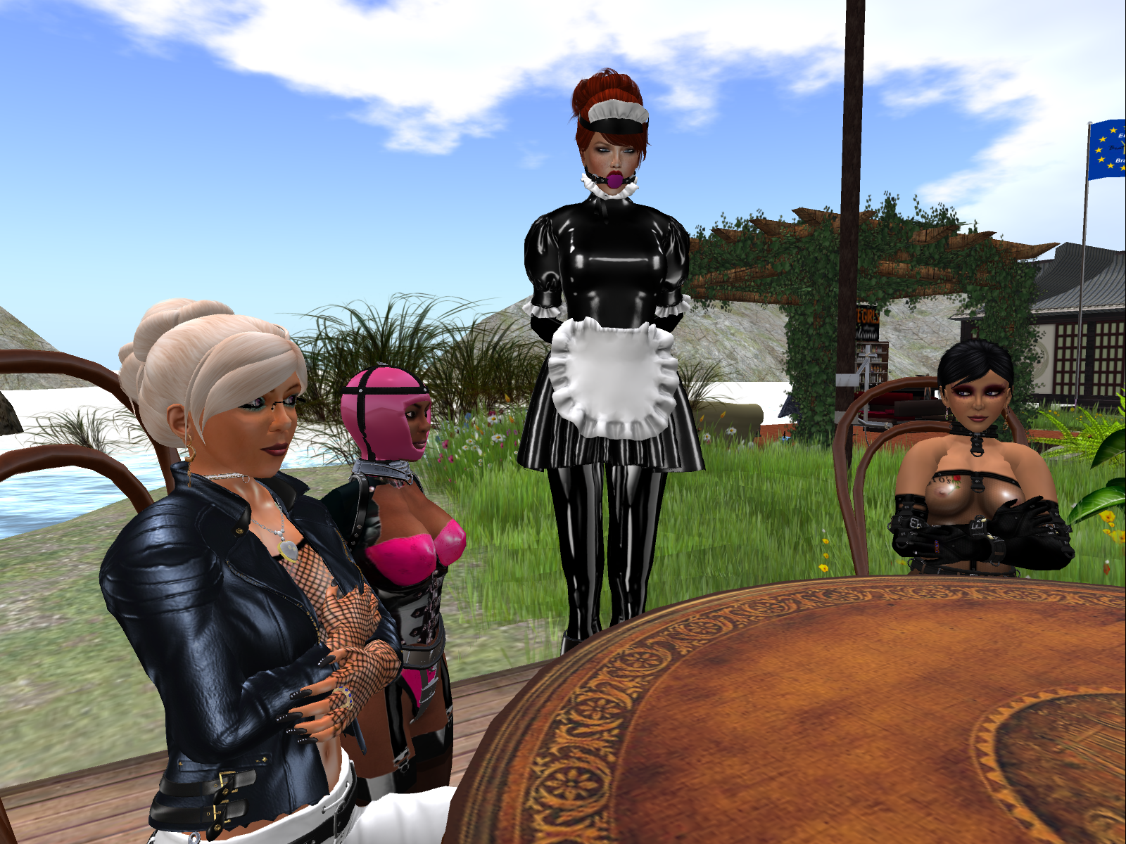 It was my turn to compile an entry for our blog and coming up to Kitty’s (Santana Thibedeau) 5 year collaring day this was no easy task. We have told the story of slave boy many times so read back if you missed something. What I wanted to do was to write something relevant to Kitty and how he / she fits to the family now. Then this morning I get this off line message and everything fell into place. Kitty works very hard in her other life and when she comes into SL a lot of this energy is a major construct of her SL persona. There are many times when we log in to find and off line message giving us in fantastic detail why Kitty is not responsible if we get a complaint about her presence in another sim. Or how she came to have such an unusual titler set. Logging in to these messages always begins our SL experience with a smile. Kitty is not one for sitting and watching for long periods, she has to be a part of the fun and contributes a lot to those who are lucky to have her company.
