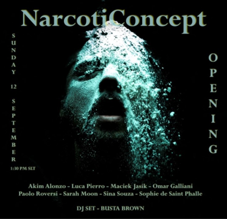 I got an invitation from Sophie de Saint Phalle (perpetua1010) to see her newest exhibition. She gave me a poster of Narcotic Concept (or NarcotiConcept), an invitation to an opening event on September 12th featuring the art of Akim Alonzo, Luca Pierro, Maciek Jasik, Omar Galliani, Paolo Roversi, Sarah Moon, Sina Souza and Sophie de Saint Phalle.