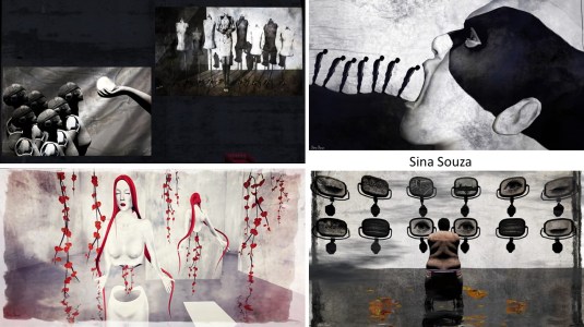 The next artist was Sina Souza (sinalein). I had seen Sina’s art just a few months ago at Nitroglobus Roof Gallery (read my blogpost here). Sina Souza (sinalein) started with creating images in Second Life in November 2012. She has had a lot of exhibitions, from which I saw just one back in 2017 “Mental Levels” at MetaLES (read here). Actually that was the last exhibtion of Sina Souza before she took a break of Second Life for 4 years and returned with the exhibtion at Nitroglobus Roof Gallery.