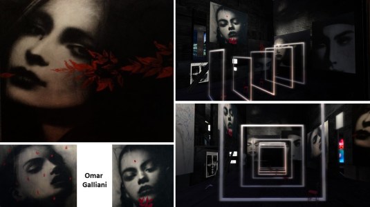 The landmark led me to a skybox with the art of Luca Pierro. It is a dark room, the walls display portraits, colourful portraits of males, some of the heads are covered, or express fear and danger. At this room I found a notecard giver with some information about Luca Pierro.
