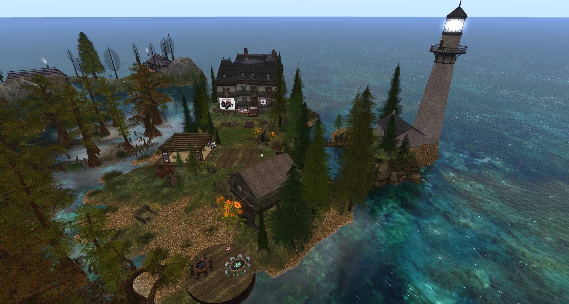 Anyway that said we wanted a change for our island as well. And we began squeezing out prims to make room for a nicer place to meet at our house, we planted, we made walkways, we created another beach and we’re still optimizing. But the main changes are done now. So here are some impressions of our remodeled Eurobrats headquarter.