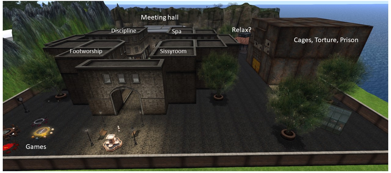 The landing point is in a seperate welcome pavilion, where you can get a notecard with some background information about Elevate Femdom and a notecard with the simrules. I recommend reading the rules, although they are quite simple considering that it is a femdom place and everybody is asked behave accordingly.