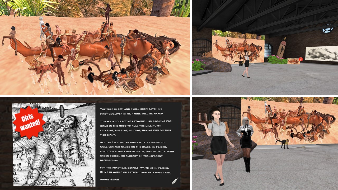 All pictures are based on real paintings and for every picture Ambre provides the visitor with the information who painted the orginal and often where the original is exhibited (in RL). Ambre’s particular style and wit is that she sees what might be hidden in these (for most people of today) boring paintings – or what might be added to them to transfer them into today.